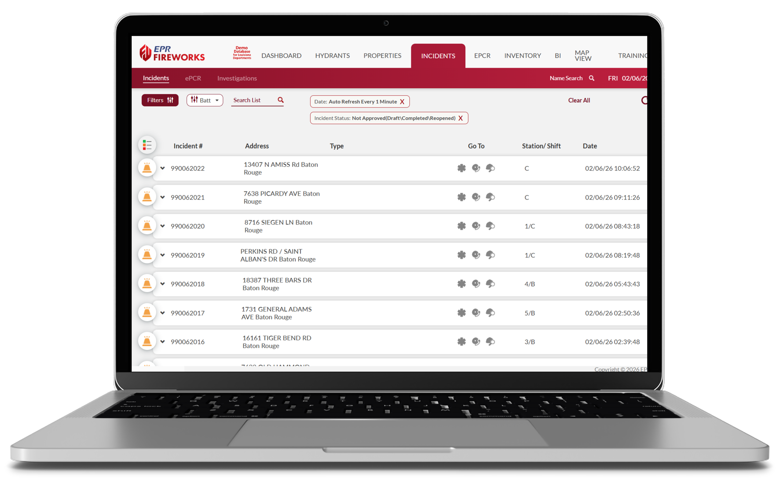 - Comprehensive Integration: EPR FireWorks integrates with dispatch systems, records management tools, and wildland fire data sources. CAD systems can automatically populate NERIS incident lists, reducing manual entry.